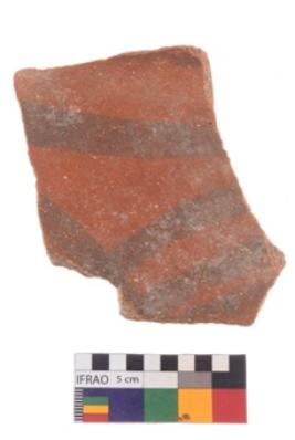 | Description / विवरण | Specimen of potsherd black on red painted pottery. It is fine fabric in sharp contrast with painted design are executed in black pigment. |