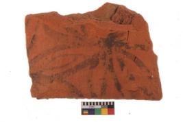 | Description / विवरण | Specimen of potsherd with decorative geometric painting. Type Black on Red Ware . |