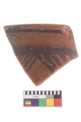 | Description / विवरण | Specimen of potsherd with black decorative geometric painting. |