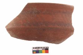 | Description / विवरण | Specimen of potsherd with black decorative geometric Linear painting, Tpre Black on Red Ware . |