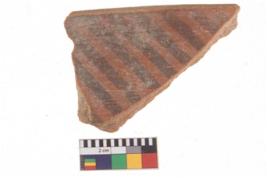 | Description / विवरण | Specimen of potsherd with black decorative geometric painting. |