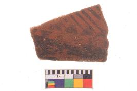 | Description / विवरण | Specimen of potsherd with black decorative geometric Linear painting, Tpre Black on Red Ware . |