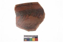 | Description / विवरण | Specimen of potsherd with black decorative geometric painting. |