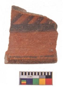 | Description / विवरण | Specimen of potsherd with black decorative geometric painting. |