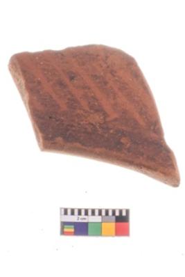 | Description / विवरण | Specimen of potsherd with black decorative geometric painting. |