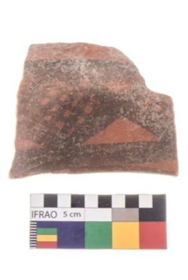| Description / विवरण | Specimen of potsherd with black decorative geometric painting. |