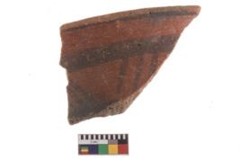 | Description / विवरण | Specimen of potsherd with black decorative geometric painting. |