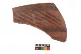 | Description / विवरण | Specimen of potsherd with black decorative geometric painting. |