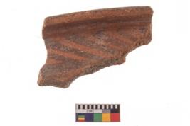 | Description / विवरण | Specimen of potsherd with black decorative geometric painting. |