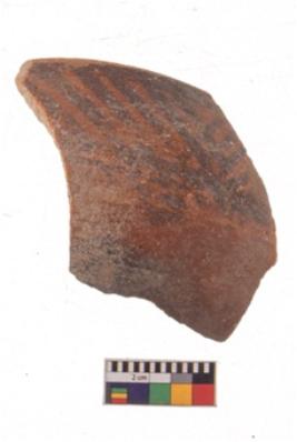 | Description / विवरण | Specimen of potsherd with black decorative geometric painting. |