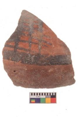 | Description / विवरण | Specimen of potsherd with black decorative geometric painting. |