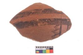 | Description / विवरण | Specimen of potsherd with black decorative geometric painting. |