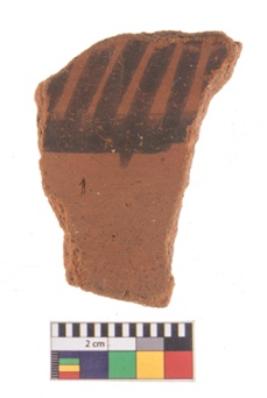 | Description / विवरण | Specimen of potsherd with black decorative linear painting. |