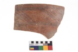 | Description / विवरण | Specimen of potsherd black on red painted pottery. It is fine fabric in sharp contrast with painted design are executed in black pigment. |