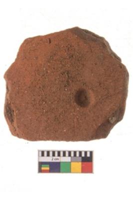 | Description / विवरण | Specimen of terracotta Wheel. It is red ware rounded shape with center perforation. |