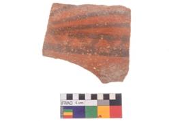 | Description / विवरण | Specimen of potsherd black on red painted pottery. It is fine fabric in sharp contrast with painted design are executed in black pigment. |