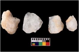 | Description / विवरण | Specimen of a cores with several broad fluted marks. Some of them have sharp edges. |