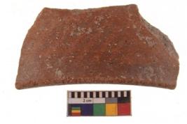 | Description / विवरण | Specimen of potsherd black on red painted pottery. It is fine fabric in sharp contrast with painted design are executed in black pigment. |