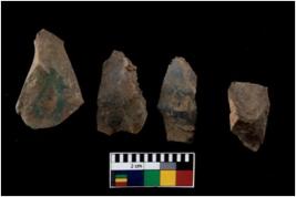 | Description / विवरण | There are n 4 of utilized worked cores. They show multidirectional irregular dominant scar pattern. Three are tapering at one end. |