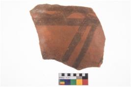 | Description / विवरण | Specimen of potsherd with black decorative geometric painting. |
