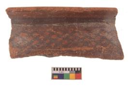| Description / विवरण | Specimen of potsherd black on red painted pottery. It is fine fabric in sharp contrast with painted design are executed in black pigment. |