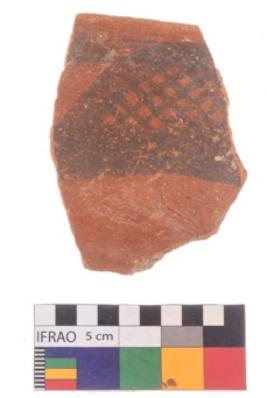 | Description / विवरण | Specimen of potsherd with black decorative geometric painting. |