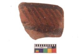 | Description / विवरण | Specimen of potsherd black on red painted pottery. It is fine fabric in sharp contrast with painted design are executed in black pigment. |