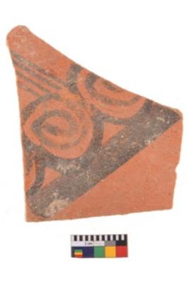 | Description / विवरण | Specimen of potsherd with decorative geometric painting. Type Black on Red Ware . |