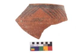 | Description / विवरण | Specimen of potsherd with black decorative geometric painting. |