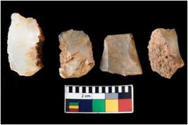 | Description / विवरण | There are n 4 of utilized worked cores. They show multidirectional irregular scar pattern. Two have round base. |