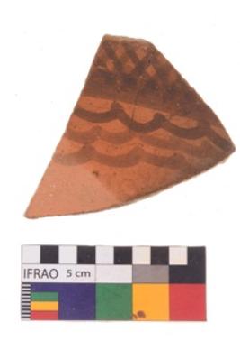 | Description / विवरण | Specimen of potsherd black on red painted pottery. It is fine fabric in sharp contrast with painted design are executed in black pigment. |
