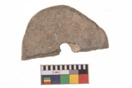 | Description / विवरण | Specimen of terracotta Wheel. It is red ware rounded shape with center perforation. |