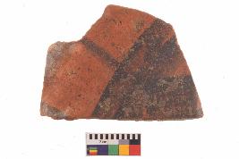 | Description / विवरण | Specimen of potsherd with black decorative painting, Tpre Black on Red Ware . |