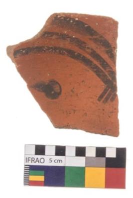 | Description / विवरण | Specimen of potsherd with black decorative geometric painting. |