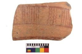 | Description / विवरण | Specimen of potsherd with decorative geometric painting. Type Black on Red Ware . |