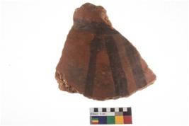 | Description / विवरण | Specimen of potsherd with black decorative geometric painting. |