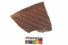 | Description / विवरण | Specimen of potsherd with black decorative geometric Linear painting, Tpre Black on Red Ware . |