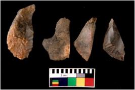| Description / विवरण | There are n 4 of utilized worked cores. They show multidirectional irregular scar pattern and have uneven surface. |