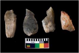 | Description / विवरण | There are n 4 of utilized worked cores. They show multidirectional irregular dominant scar pattern. All of them are tapering on one end and have sharp edges. |