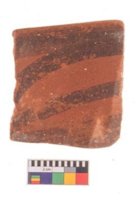 | Description / विवरण | Specimen of potsherd black on red painted pottery. It is fine fabric in sharp contrast with painted design are executed in black pigment. |