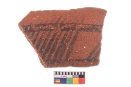 | Description / विवरण | Specimen of potsherd with black decorative geometric painting. |