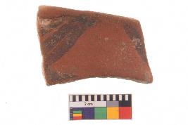 | Description / विवरण | Specimen of potsherd with black decorative painting, Tpre Black on Red Ware . |