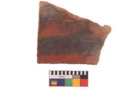 | Description / विवरण | Specimen of potsherd with black decorative painting, Tpre Black on Red Ware . |