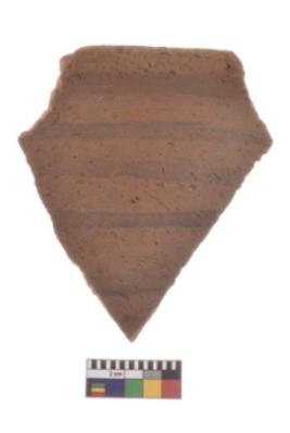 | Description / विवरण | Specimen of black on red ware with decorative geometric parallel lines painting. |