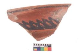 | Description / विवरण | Specimen of potsherd with black decorative geometric painting. |