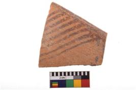 | Description / विवरण | Specimen of potsherd with decorative geometric painting. Type Black on Red Ware . |