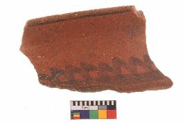 | Description / विवरण | Specimen of potsherd with black decorative zigzag painting, Tpre Black on Red Ware . |