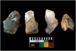 | Description / विवरण | There are n 4 of utilized worked cores. They show multidirectional irregular dominant scar pattern. Three are tapering on one end and have sharp edges. |