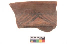| Description / विवरण | Specimen of potsherd with black decorative geometric painting. |