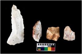 | Description / विवरण | There are n 4 of utilized worked cores. They show multidirectional irregular dominant scar pattern. Two are tapering on one end and all are having sharp edges. |